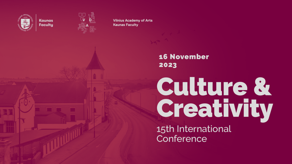 Dalinamės kvietimu į tarptautinę 15 -ąją mokslinę konferenciją ,,Kultūra ir kūrybiškumas” (15th International Conference “Culture and Creativity”), kuri vyks 2023 m. Lapkričio 16 d.